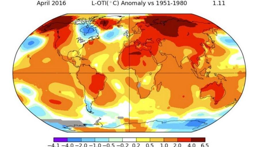 giungono conferme che aprile 2016 è stato il più caldo, a livello planetario, da quando sono svolte le rilevazioni scientifiche dal 1880.