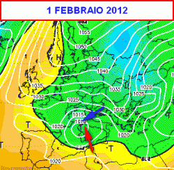 Ecco la situazione presente il 1 febbraio 2012 in Italia. Eravamo alle soglie della grande ondata di gelo e neve che mise sotto scacco molte regioni della nostra Penisola.