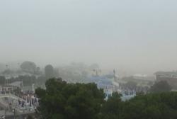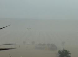 Nelle immagini la tempesta di sabbia alle 16, vista dall’immediato entroterra, la vista della spiaggia e del mare è impedita dalla sabbia in sospensione.