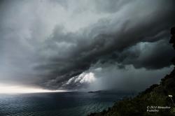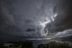 San Rocco di Camogli, punto estremamente panoramico della riviera ligure in cui potremo ammirare la maestosa struttura del temporale in graduale avvicinamento al nostro punto di osservazione.
