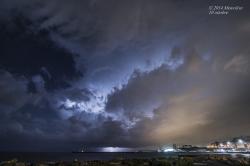 Altre spettacolari fotografie riprese dalla zona di Chiavari, col temporale marittimo ancora molto intenso che ha presentato incudine ed updraft illuminati da fulmini, contornate dalla luce surreale della luna.