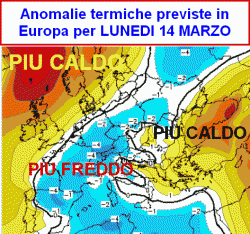 Osservate attentamente le anomalie termiche a scala europea attese per la giornata di lunedì 14 marzo.
