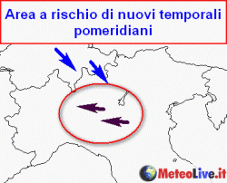 Area temporalesca potenziale sulla Lombardia nel pomeriggio
