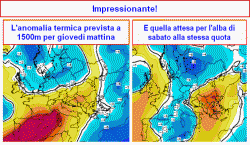 Davvero sensibile e spettacolare la flessione delle temperature prevista tra giovedì mattina e sabato sull’Italia: in circa 48 ore si perderanno in molte zone anche oltre 10-12°C e chi in queste ore sta sfoggiando magliettine a manica corta e sandali, sappia che, soprattutto abitando al nord, venerdì mattina uscire così di casa potrebbe essere decisamente imprudente.