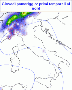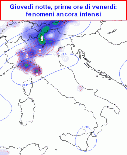 Queste 3 mappe che vi mostriamo sono il risultato delle prime elaborazioni, ancora a bassa risoluzione, per il pomeriggio-sera di giovedì e la terza centrata sul pomeriggio di venerdì.