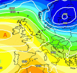 A lato la situazione prevista per domenica 20 aprile: una vigorosa depressione dopo aver interessato l’Europa settentrionale e centrale, investirebbe l’Italia. Se tale configurazione venisse confermata, porterebbe una sensibile diminuzione delle temperature e rovesci di pioggia e temporali soprattutto al centro e al sud, insieme a venti forti, ma vista la lontananza del periodo non è ancora possibile entrare nei dettagli. Sono ancora necessari aggiornamenti e conferme, per il momento vi segnaliamo questa ipotesi "ufficiale".