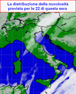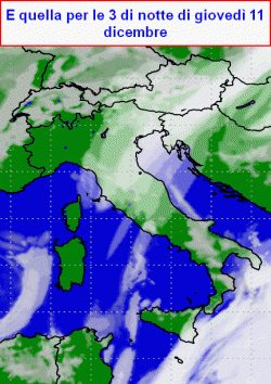 Un po’ più alte si, ma comunque vicine allo zero in diverse località del nord e sulle zone interne del centro, perchè non mancheranno le schiarite. Infatti l’analisi della nuvolosità prevista per la notte, ci consente di capire che le nubi dovrebbero andarsene già dopo il tramonto al nord, specie ad ovest, insistere solo a tratti al centro e sul nord-est, e tornare a coprire il cielo solo parzialmente tra l’1 e le 3 della notte.