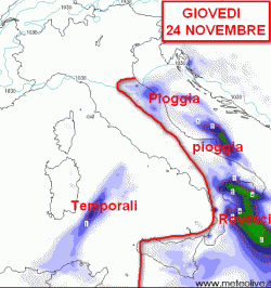 Giovedì 24 novembre: ecco dove pioverà…