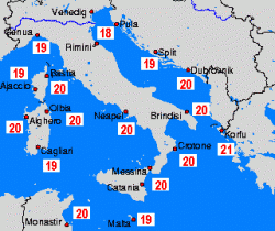 Il valore piu alto questa mattina si registra al largo di Corfù, con 21°.