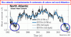Le scoperte di un team guidato da David JR Thornalley del Department of Geography, University College di Londra, pubblicate su Nature mostrano che il contenuto di calore del Nord Atlantico da zero a 700 metri di profondità si è raffreddato in modo importante dagli anni 50 ad oggi e la cosa non è affatto trascurabile.