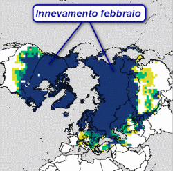 Nel complesso dunque l’innevamento di inizio aprile, considerato a livello emisferico, risulta appena al di sotto della media calcolata dal 1967 al 2010 e ammonta a circa 2 milioni e 600 mila chilometri quadrati di superficie. Da considerare invece l’andamento positivo registrato in febbraio con quasi 2 milioni di chilometri quadrati in più rispetto alla stessa media di riferimento, con uno sbalzo di quasi 5 milioni di chilometri quadrati in soli due mesi.