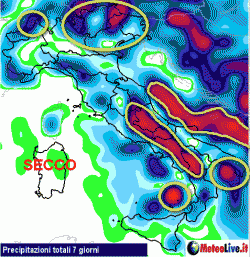 Le precipitazioni dei prossimi sette giorni in Italia: centro-sud ancora sugli scudi