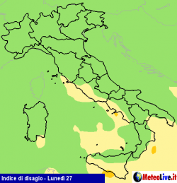 Su alcune zone del Lazio, della Campania e della Sicilia però il caldo darà ancora un po’ fastidio ma la colorazione gialla indica appunto "Caldo un po’ fastidioso ma sopportabile", come potete vedere nella pagina dedicata dove trovate tutte queste mappe continuamente aggiornate e fino a 7 giorni: https://www.meteolive.it/speciali/MAPPE/73/Indice-di-disagio-estivo/33057/