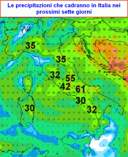 Ecco le precipitazioni attese in Italia nei prossimi sette giorni.