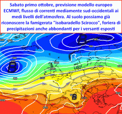 La prima decade ottobrina potrebbe svolgersi sotto una circolazione occidentale che al suolo sarà accompagnata da una ventilazione prevalente di Scirocco. Condizioni atmosferiche quasi estive al sud, occasioni di pioggia forse anche abbondante al nord.