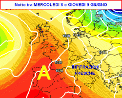 La tesi del modello europeo imbastita questa mattina (per altro non diversa da quella del "collega" americano) ci mostra una fascia anticiclonica troppo sbilanciata ad ovest per proteggere adeguatamente la nostra Penisola.