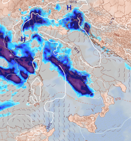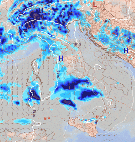 L’arrivo della figura depressionaria dalla Francia, attesa già da domenica pomeriggio al nord-ovest, diverrà più importante con il passare dei giorni, fino a provocare precipitazioni di una certa rilevanza su molte aree del Paese, specie quelle nord-occidentali e tirreniche.