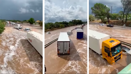 Alluvione nel sud della Francia: l’autostrada A9 diventa un fiume, persone intrappolate vengono salvate