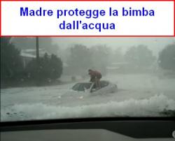L’icona di questo evento estremo rimarrà certamente l’immagine di una mamma che, salita sul tetto della sua auto, proteggeva la sua bambina dalla massa d’acqua che stava sommergendo tutto. E’ stata salvata inisieme ad altri automobilisti rimasti intrappolati in auto.