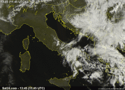 Ecco la situazione in Italia nel pomeriggio, vista dall’occhio del satellite.