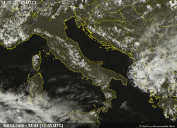 Vi sono tuttavia degli addensamenti nel sud della Sardegna, che fanno capo alla parte avanzata di una debole perturbazione afro-mediterranea. Tali addensamenti non hanno provocato piogge.