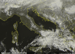 Attualmente piove solo sulla Calabria, mentre sul resto del meridione la nuvolosità si è fatta più rotta ed ha lasciato trasparire anche un po’ di sole.