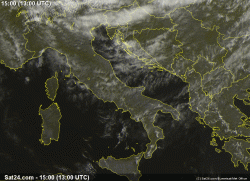 Sull’Italia continua l’estate di settembre. Anche oggi bella giornata soleggiata, disturbata solo da passaggi di nuvolosità medio-alta, piu intensi al nord ( come mostra l’immagine satellitare).