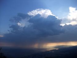 Dopo 10 minuti di trambusto, la nube temporalesca si è diretta in mare, lanciando anche qualche bel fulmine ( la vediamo nella foto sopra di Gian Enzo Bocchi in tutta la sua "cattiveria", mentre sta abbandonando la città).