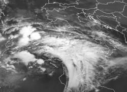 Finalmente una bella immagine satellitare, che ritrare il Mare Nostrum alle prese con una perturbazione abbastanza intensa.