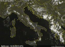 Questa immagine satellitare mostra la "spina dorsale dell’Italia" ricoperta da nubi cumuliformi, che solo saltuariamente ed occasionalmente hanno dato luogo a rovesci.