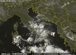 L’occhio del satellite inquadra fedelmente il tempo di questo pomeriggio in Italia.