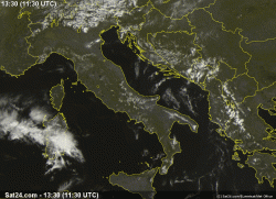 Isolati temporali persino sulla punta estrema della Puglia, la zona di Lecce. Per il resto tutto sereno o con nubi di poco conto.