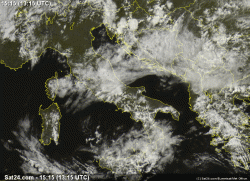 La nuvolosità irregolare che in mattinata ha interessato il nord, si è portata verso le regioni centrali. Ha dato luogo a qualche pioggia o rovescio, specie nelle zone interne nelle ore del pomeriggio.