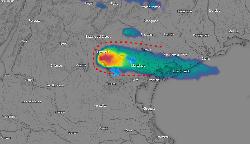 I fenomeni non sono ancora particolarmente violenti (supercella LP), ma il temporale è in continua evoluzione e potrebbe sviluppar ulteriore energia e dar luogo a grandinate con chicchi di grosse dimensioni e dannosi colpi di vento. Non è esclusa anche la formazione di una tromba d’aria. Il temporale si muove verso est/sud-est.