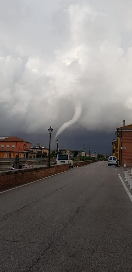 Un tornado relativamente intenso e piuttosto appariscente, visibile anche da chilometri di distanza, ha colpito attorno alle 17.15 l’area tra veneziano e rodigino, precisamente tra Loreo e Cavanella D’Adige. Le immagini impressionanti mostrano il tornado scorrazzare nella periferia di Cavanella, fortunatamente in area rurale. Al momento non risultano danni a cose o persone.
