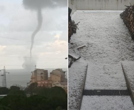 Tromba marina davanti a Termoli, forte rovescio di neve tonda sulla città