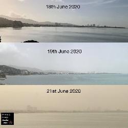 Ma come mai? Certamente non è l’inquinamento il problema. Sui Caraibi è in atto una vera e propria tempesta di sabbia… proveniente dall’Africa! Una storica e spettacolare irruzione di polvere sahariana sta sovrastando tutto il mar dei Caraibi dopo aver attraversato l’intero oceano Atlantico: tutto questo grazie ad intense correnti orientali che dal deserto del Sahara sono riuscite a sollevate enormi quantità di pulviscolo dapprima in atmosfera e successivamente verso le Americhe.