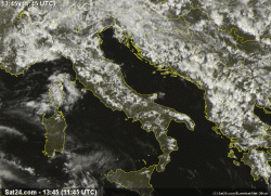 Si notano le nubi che, praticamente, ripercorrono le trame dello Stivale, essendo concentrate (salvo casi isolati) solo sulla terraferma.