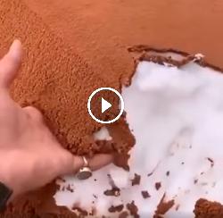 La combinazione tra la neve e la sabbia ha dato vita ad un effetto davvero sorprendente, che abbiamo rinominato come "effetto tiramisù" ma la somiglianza è netta anche con un gelato ricoperto da un velo di cacao in polvere. La foto mostra un ragazzo che raccoglie la neve ricoperta dalla sabbia e sta facendo il giro del web.