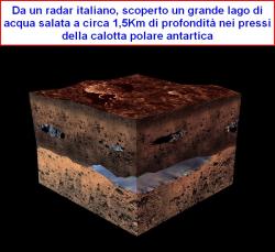Uno studio condotto da un radar italiano, mette in luce un grande lago di acqua salata nei pressi del Polo Sud marziano.