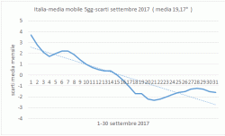 Forte calo della temperatura media nel settembre 2017. Rispetto ad agosto - 6,52° gradi.