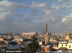 Alba gelida nella città delle torri, con il termometro sceso a qualche grado sotto lo zero e il sole ritrovato che dipinse di splendidi colori la panoramica della città ancora innevata.