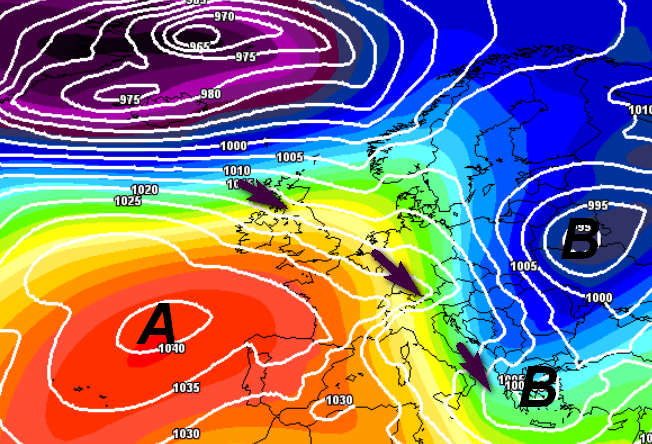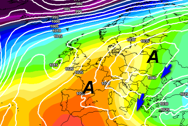 E’ più facile però che accada questo a inizio febbraio: anticiclone che arretra un po’ verso ovest e saccature atlantiche che si lanciano da nord-ovest lungo lo “scivolo” balcanico portando freddo e neve sino in Grecia o addirittura in Medio Oriente e Italia sempre spettatrice, eccezion fatta per la Puglia e in genere l’estremo sud, coinvolti marginalmente da un po’ di freddo e qualche rovescio di neve a bassa quota: