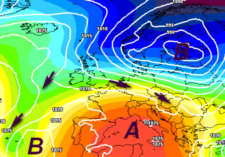 L’anticiclone proverà come sempre a dominare la scena mediterranea, approfittando di una accelerazione delle correnti in quota che manderà un po’ nel caos il tempo europeo, con continui passaggi di impulsi sul centro e soprattutto sull’est del Continente, con marginale influenza anche sul nostro Paese, segnatamente lungo il versante adriatico.