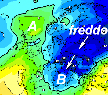 Infatti tutto il freddo che si sta accumulando sul nord del Continente deve comunque trovare prima o poi una valvola di sfogo verso sud per riequilibrare il sistema e dunque entro fine mese, ma anche prima, non è detto che possa materializzarsi un affondo freddo nord-sud con maggiore coinvolgimento ovviamente del centro e del sud Italia ma con freddo e vento quasi ovunque ed anche la "prima neve sotto il lampione" a quote basse su medio Adriatico e meridione (anche se non su pianure e coste):