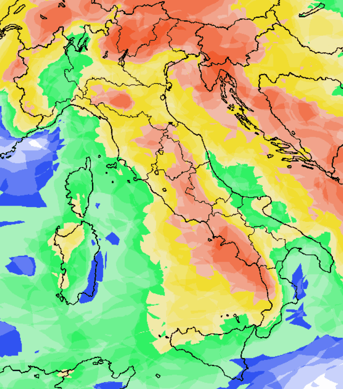 Praticamente tutta l’Italia avrà una probabilità di pioggia compresa tra media ed elevata, quest’ultima più probabile sul basso Tirreno, le aree interne del centro e il nord-est.