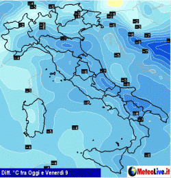 Giovedì 8 e venerdì 9 la perturbazione tenderà a sfilare verso la Grecia ma insisterà ancora sul nostro meridione con ulteriore instabilità inoltre, inizierà a risucchiare aria più fredda dai quadranti settentrionali, con generale e ulteriore calo delle temperature su tutto il Paese.