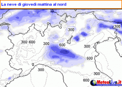 Al sud e sulle Isole Maggiori situazione analoga, con rovesci alternati a momenti asciutti, qualche locale spunto temporalesco e quota neve inizialmente oltre i 1000-1500 metri ma in calo a partire dal settore peninsulare nel corso della giornata fin verso i 600 metri in Molise, sul Gargano, sulla Campania e in Sardegna, intorno a 800-900 in Basilicata e verso i 1200-1300 metri sulle restanti regioni del sud.