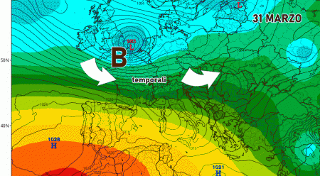 Ma prima ancora di questa forte perturbazione nord-atlantica potremo fare i conti con veloci rovesci e temporali negli ultimi due giorni di Marzo, principalmente all’estremo nord. Una depressione in approfondimento tra Gran Bretagna e Germania riuscirà ad inviare correnti instabili anche sul nord Italia tra giovedì 30 e venerdì 31. Gli effetti saranno evidenti principalmente su Alpi e Prealpi, e solo occasionalmente in Val Padana.