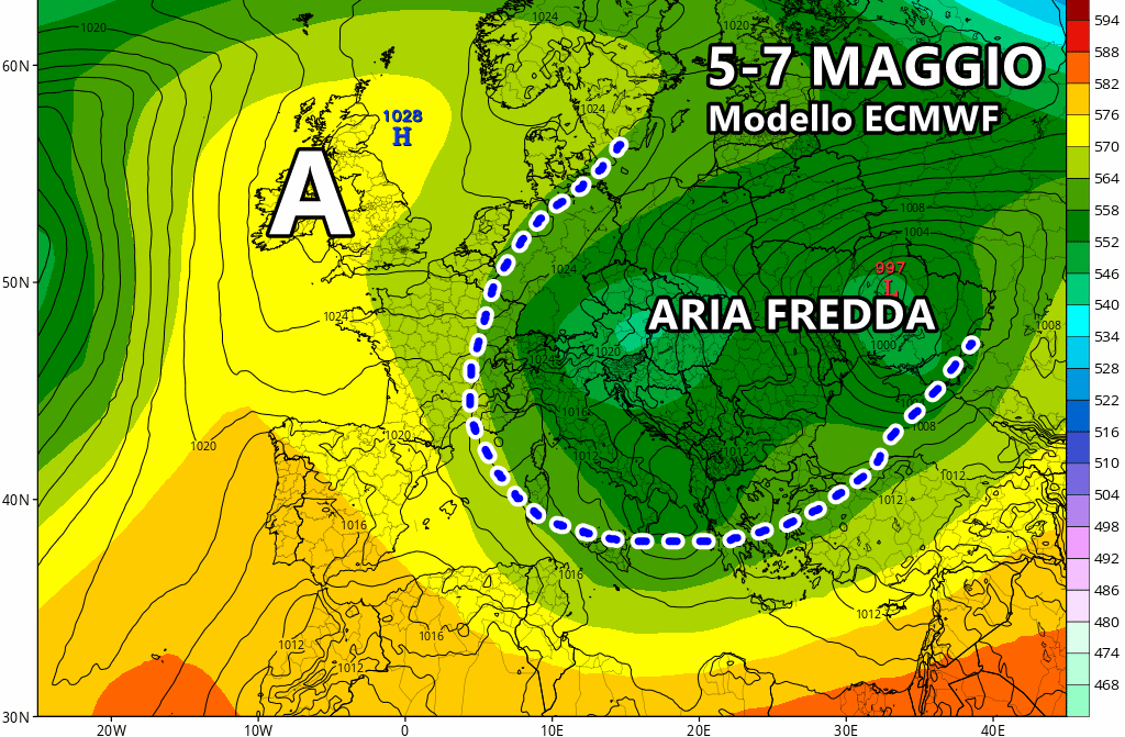 Il modello europeo ECMWF propone una clamorosa impennata dell’alta pressione delle Azzorre sin verso le latitudini subpolari, una soluzione che permetterebbe la discesa di masse d’aria fredda a tratti gelide sull’Europa orientale, le quali rischiano di raggiungere anche la nostra penisola tra il 5 e il 7 maggio. Insomma, parliamo di scenari decisamente poco consoni al periodo, che potrebbero causare non pochi problemi soprattutto al comparto agricolo. Per il momento parliamo pur sempre di tendenze, pertanto dovremo necessariamente riaggiornarci nei prossimi editoriali per avere un quadro più chiaro della situazione.